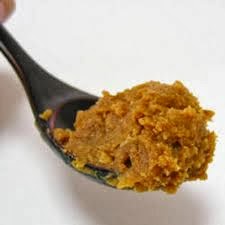 8. Make a spread using white miso, peanut butter and apple juice to thin.